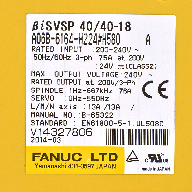محركات فانوك A06B - 6164 - H224#H580 Fanuc Bisvsp 40/40 - 18